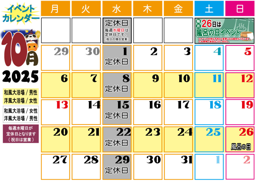 10月度カレンダー案内