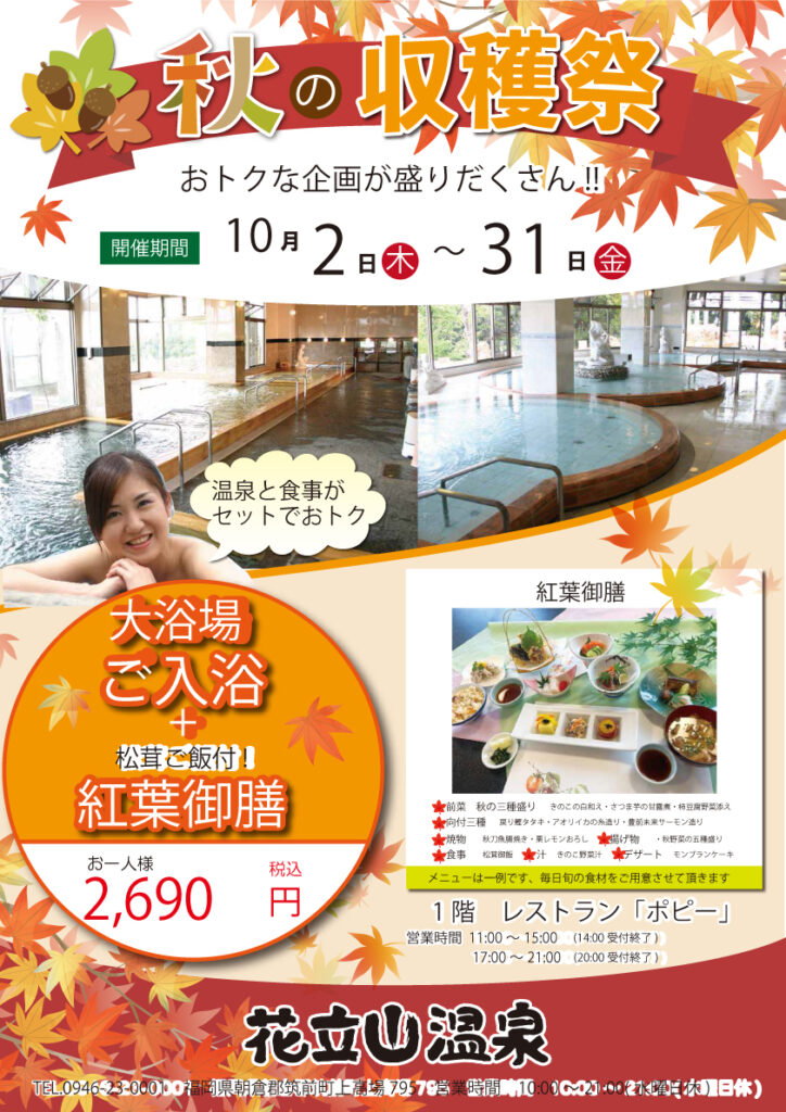 秋の収穫祭【ご入浴+紅葉御膳】セット(夜の部)