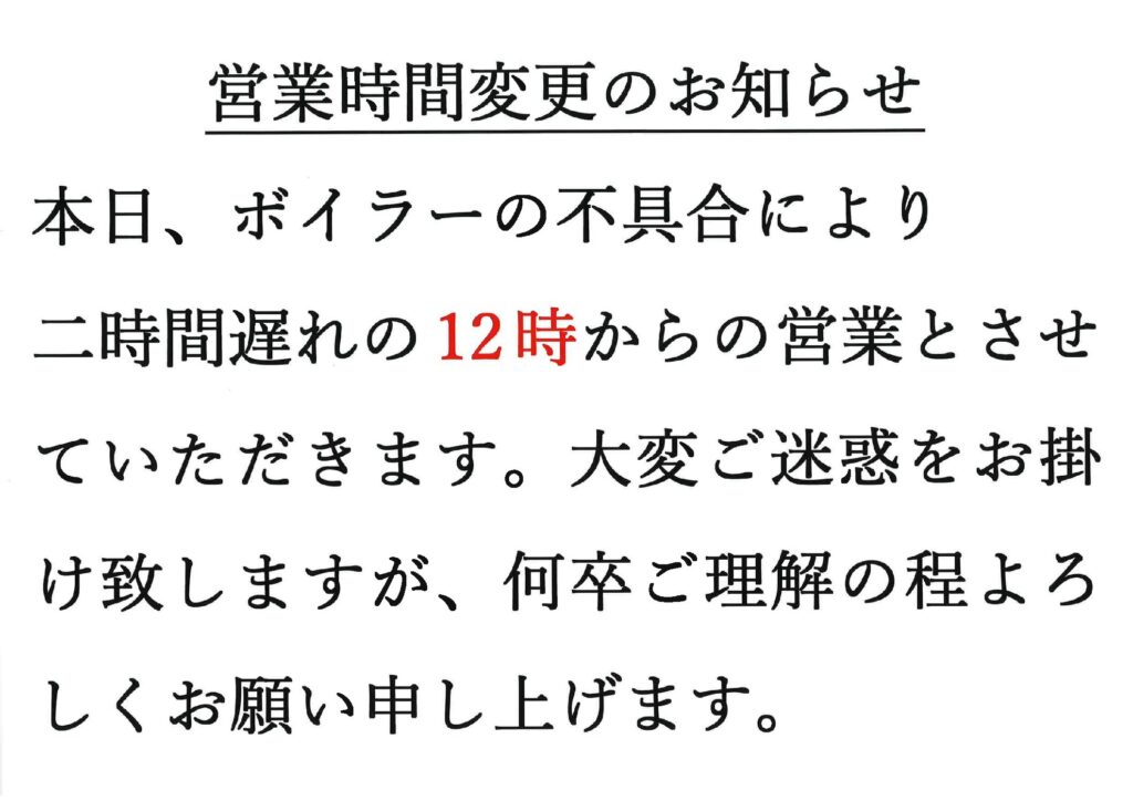 重要【営業時間変更のお知らせ】