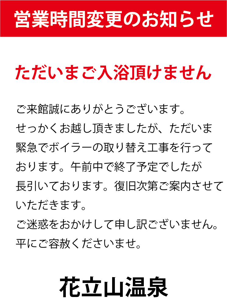 今週(2/2~2/8)の大浴場は、男性【洋風】、女性【和風】になります。