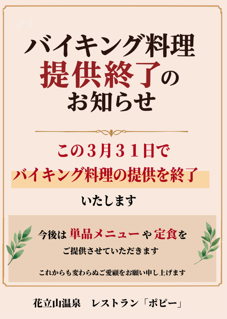 バイキング料理提供終了のお知らせ